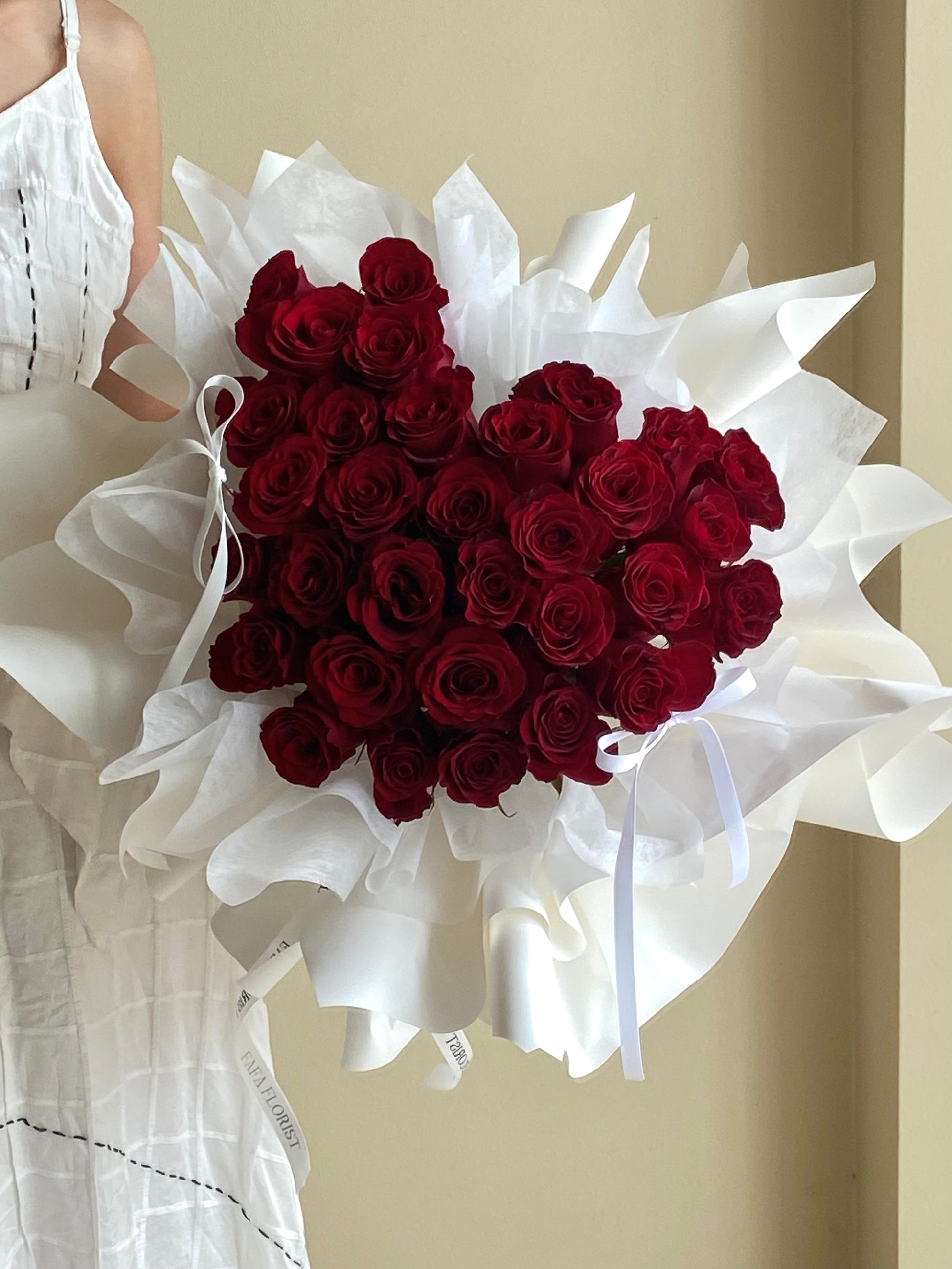 An ideal Valentine's Day gift, this Heart Shape-Red Rose bouquet is sure to make your loved one feel special.