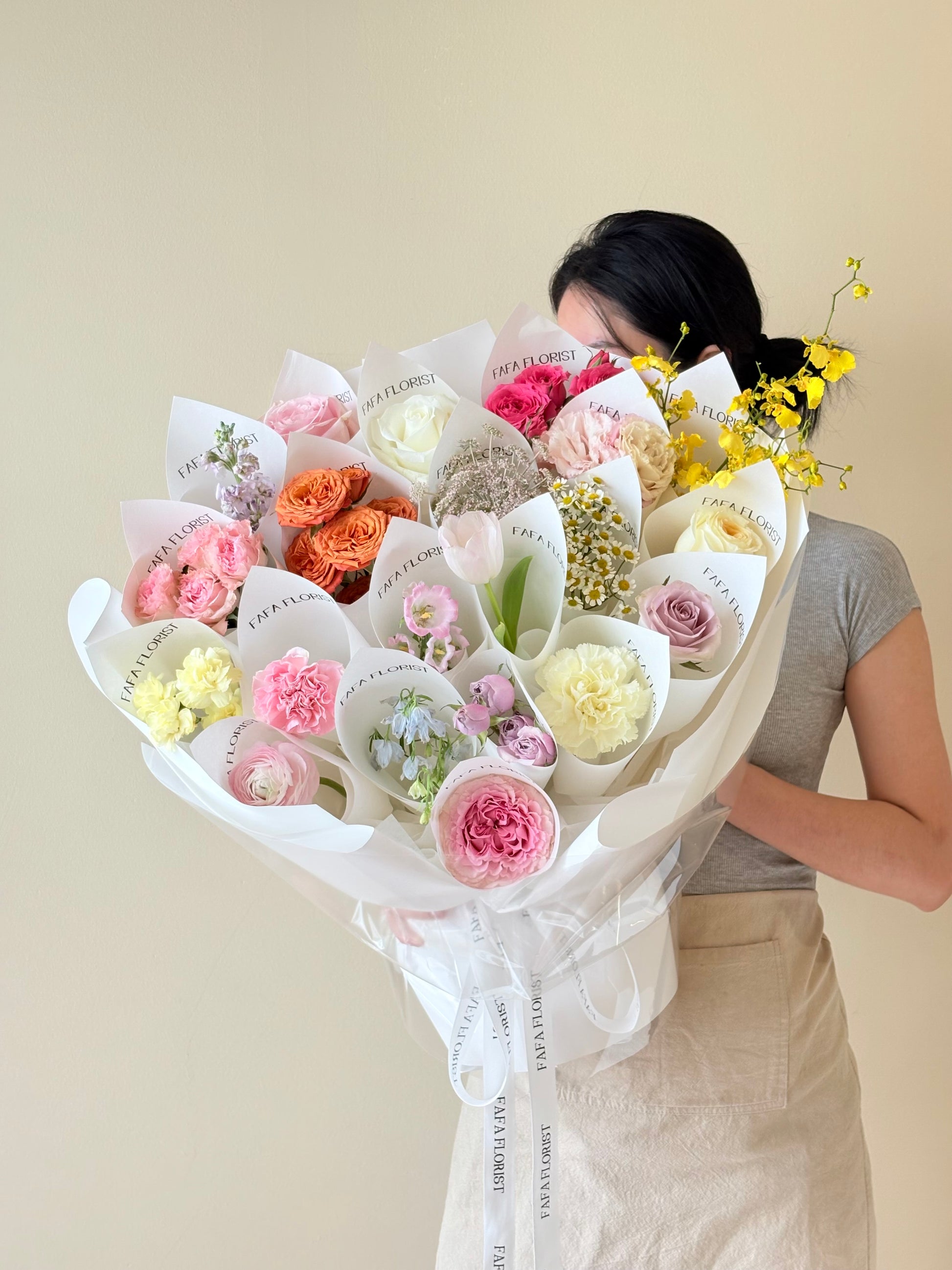 The term "customise" refers to designs with mixture of flowers / more than two types of flowers.