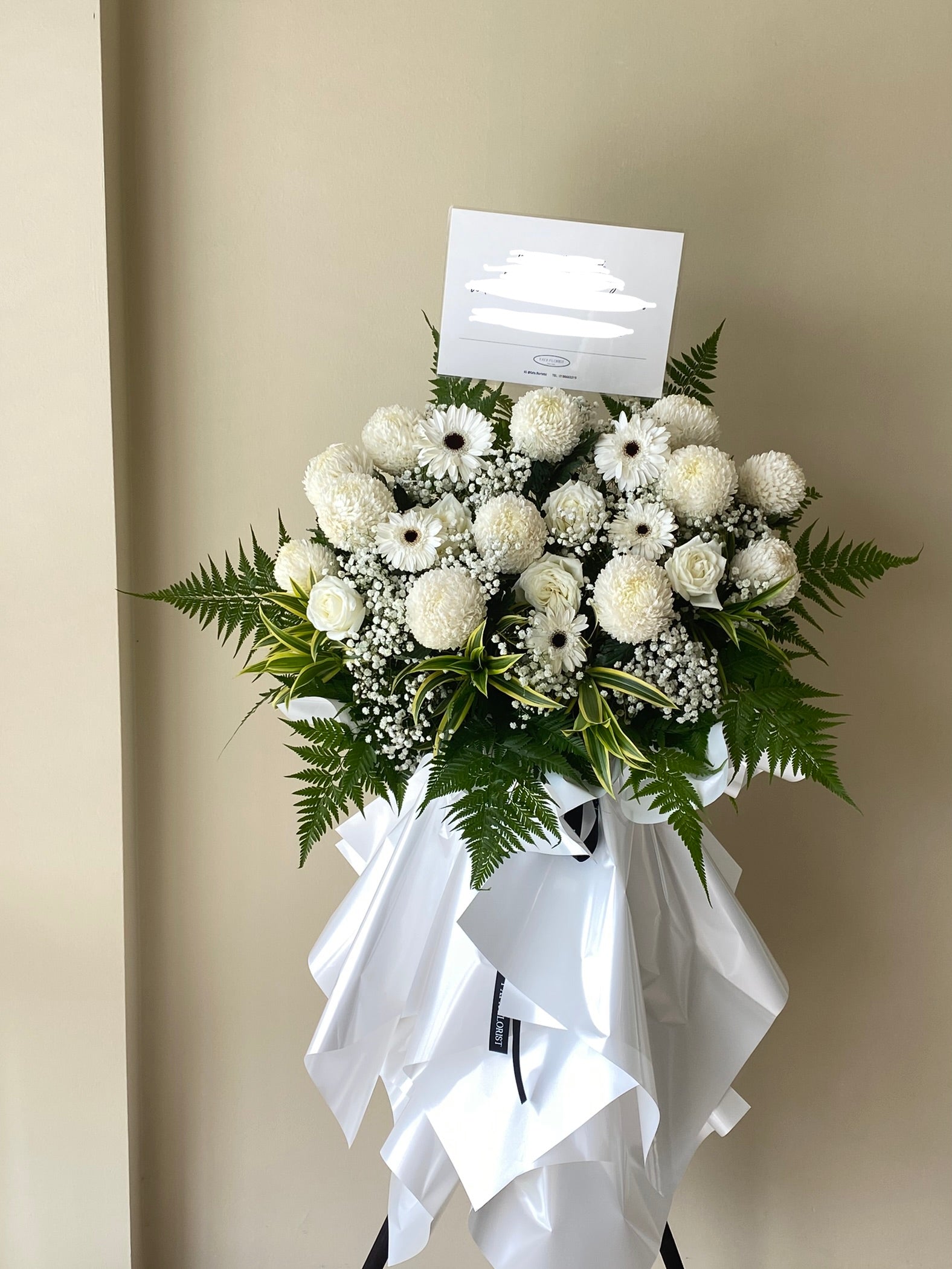White Gerbera , White Taiwan Mum , Rose & Baby Breath