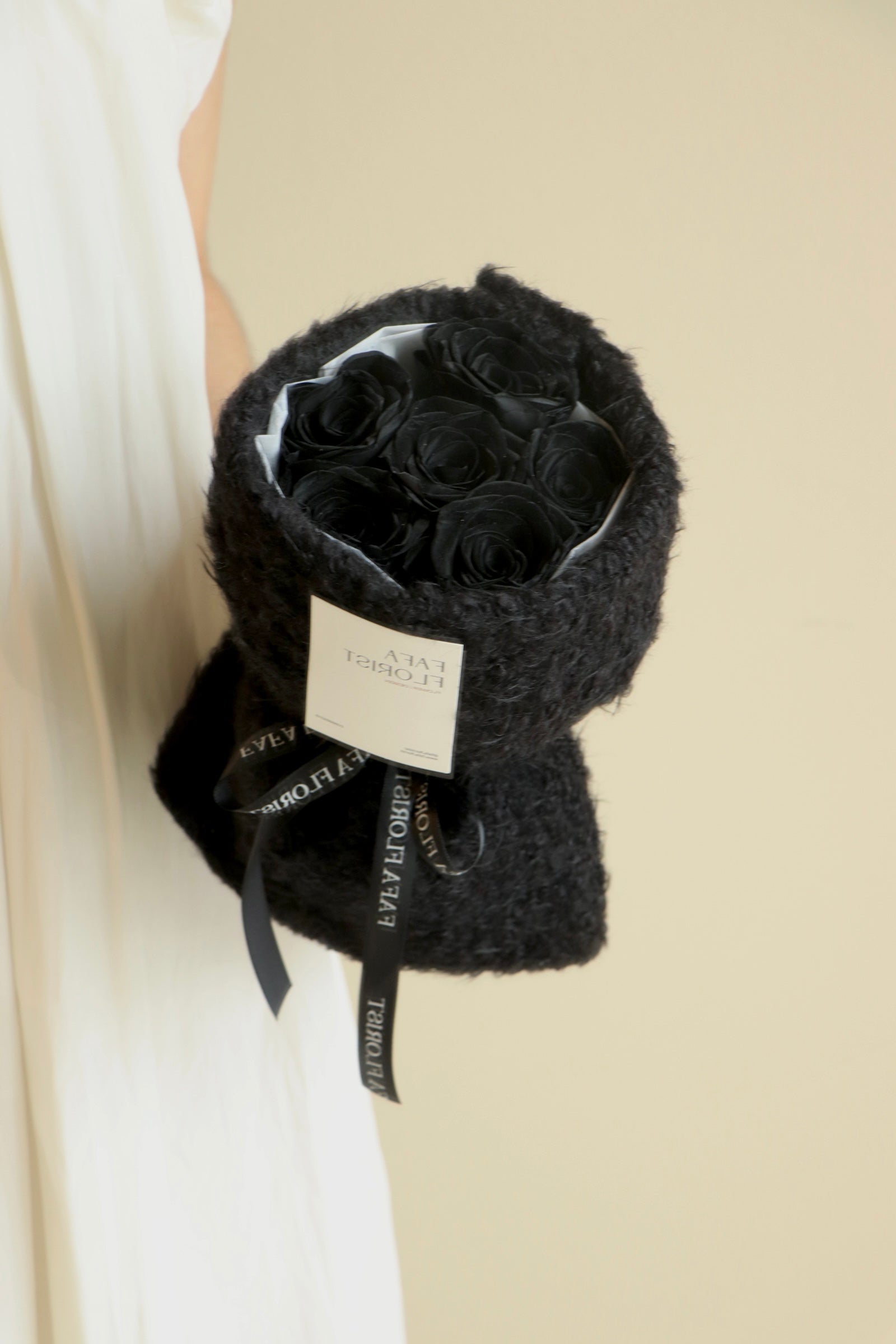 Preserved Rose 6 stalk with fluffy fabric wrapping