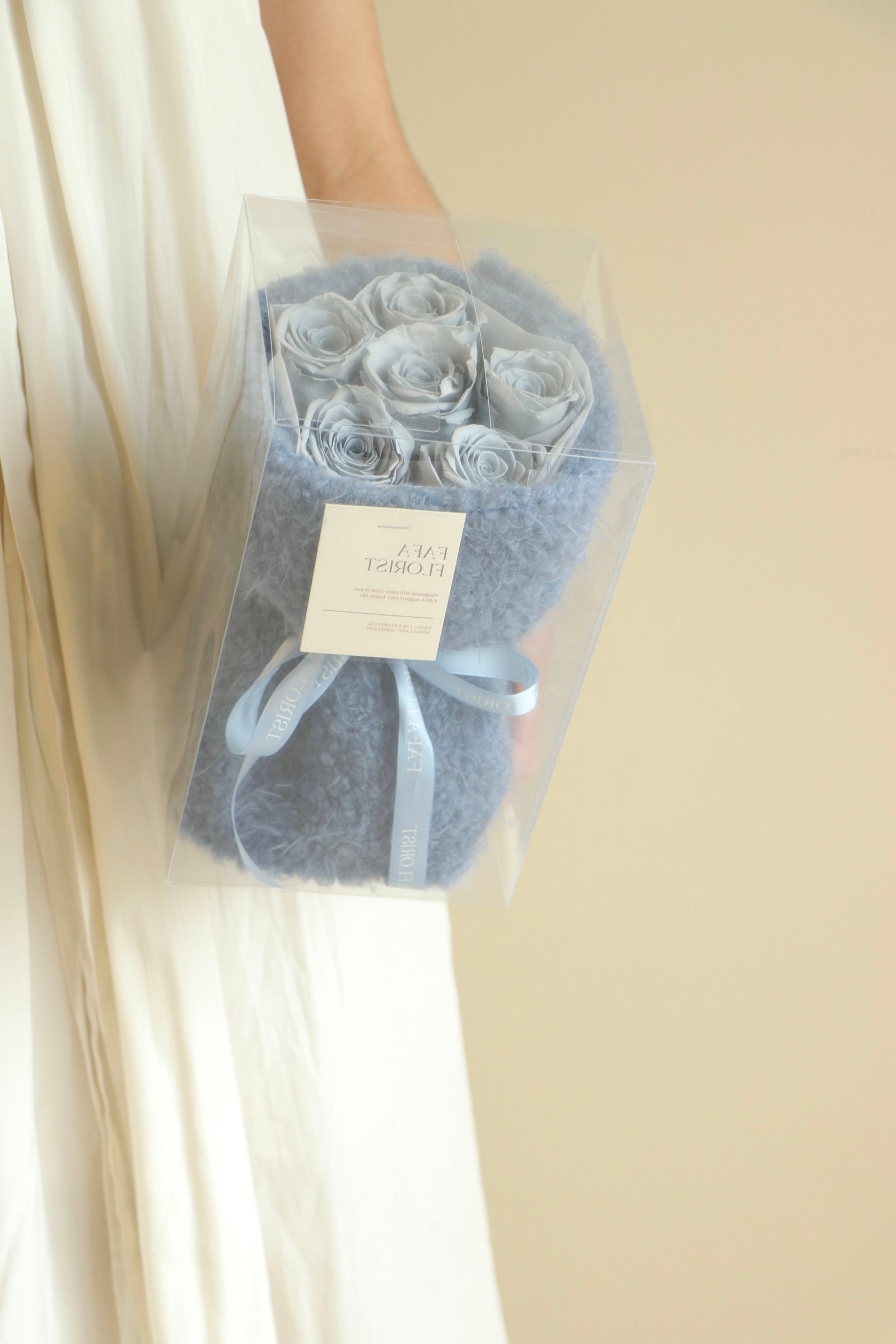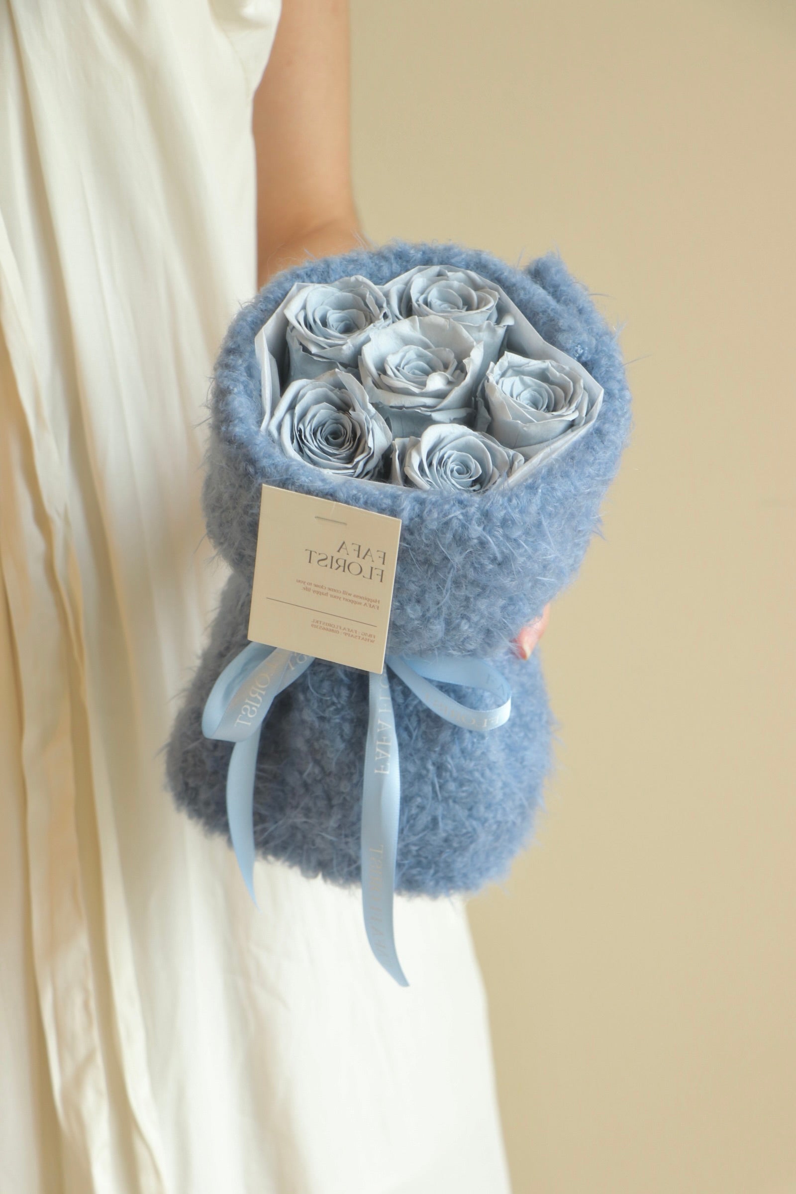Preserved Rose 6 stalk with fluffy fabric wrapping
