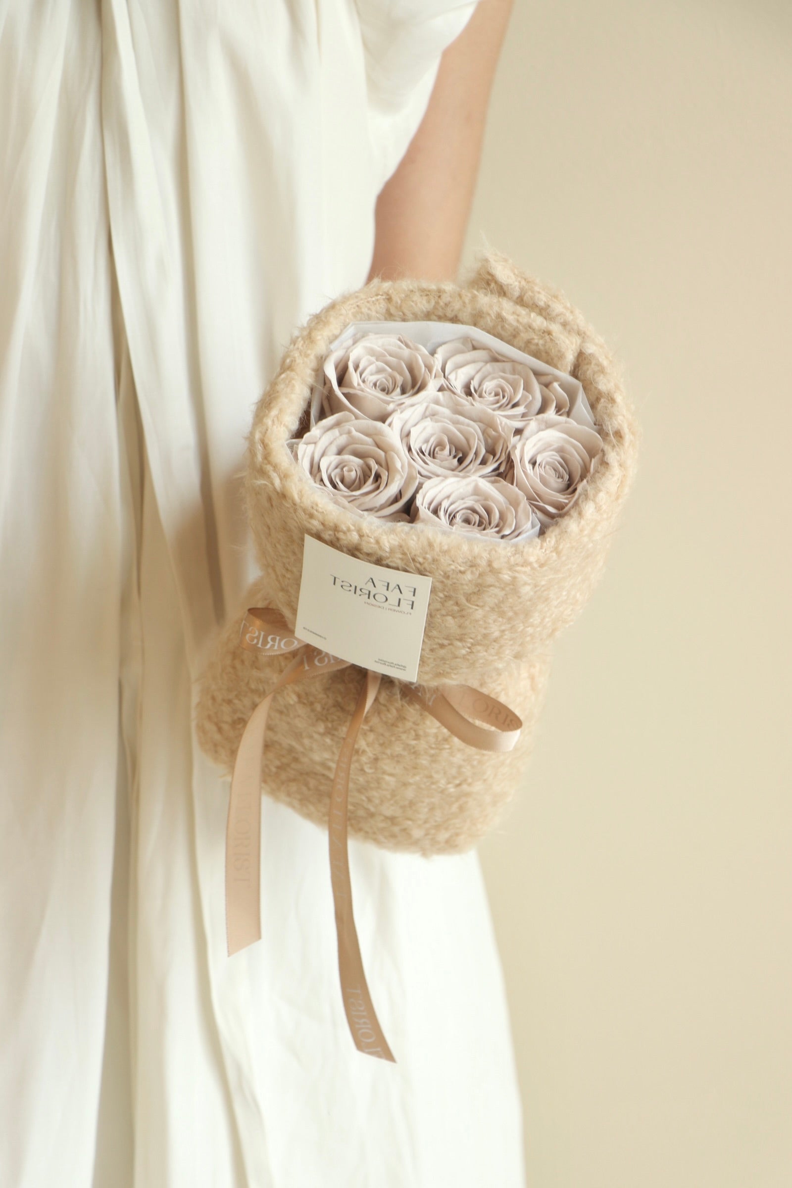Preserved Rose 6 stalk with fluffy fabric wrapping