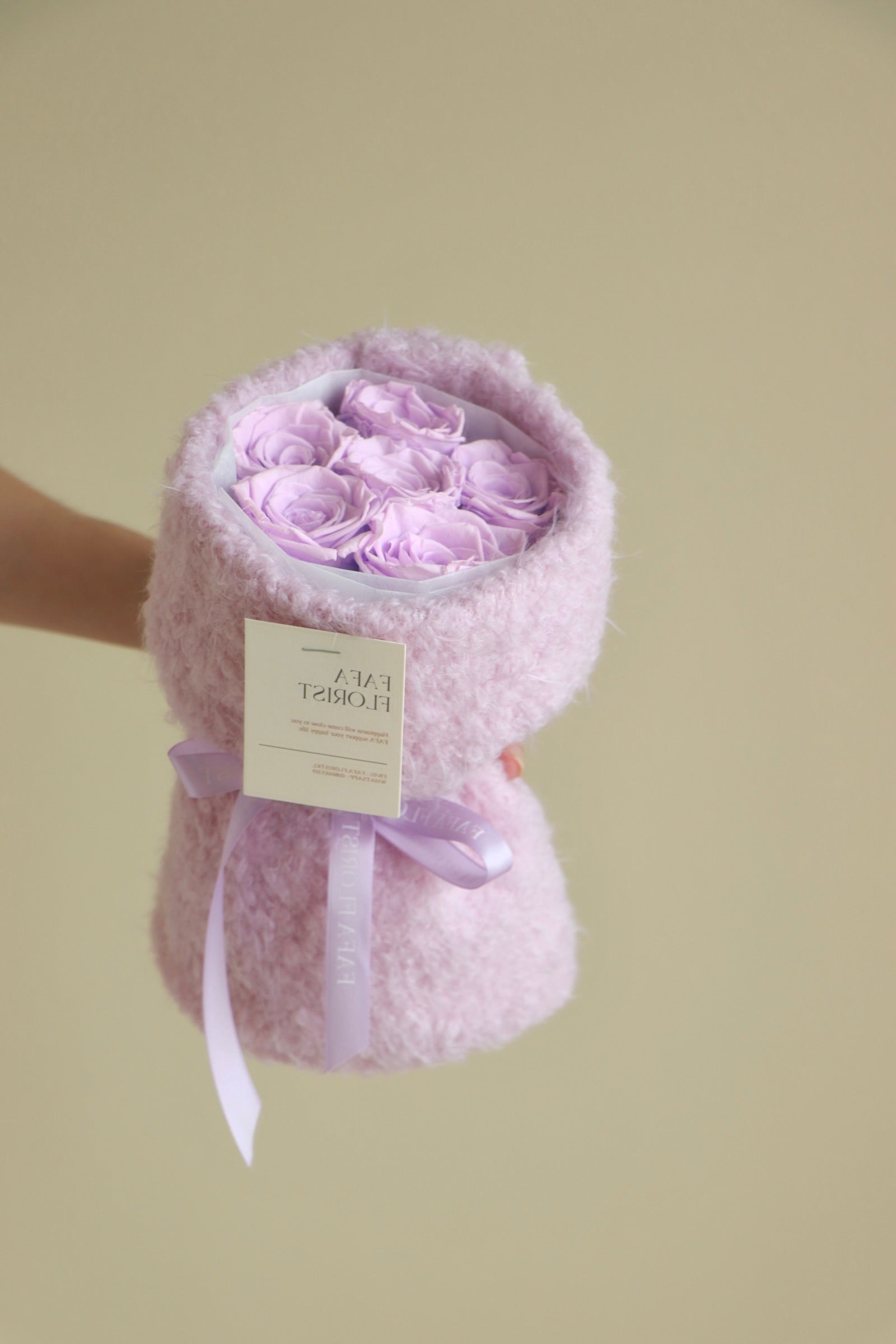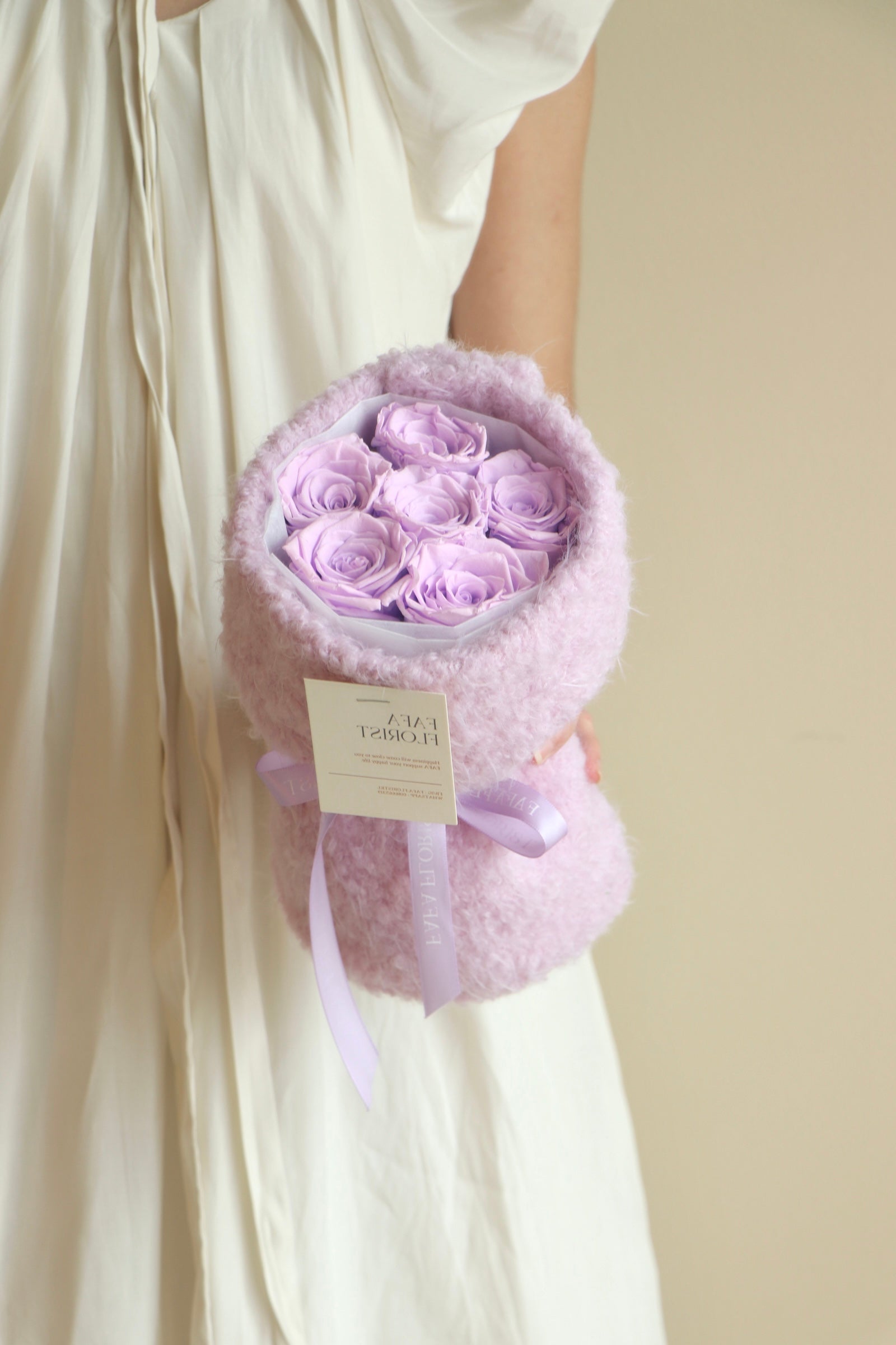 Preserved Rose 6 stalk with fluffy fabric wrapping