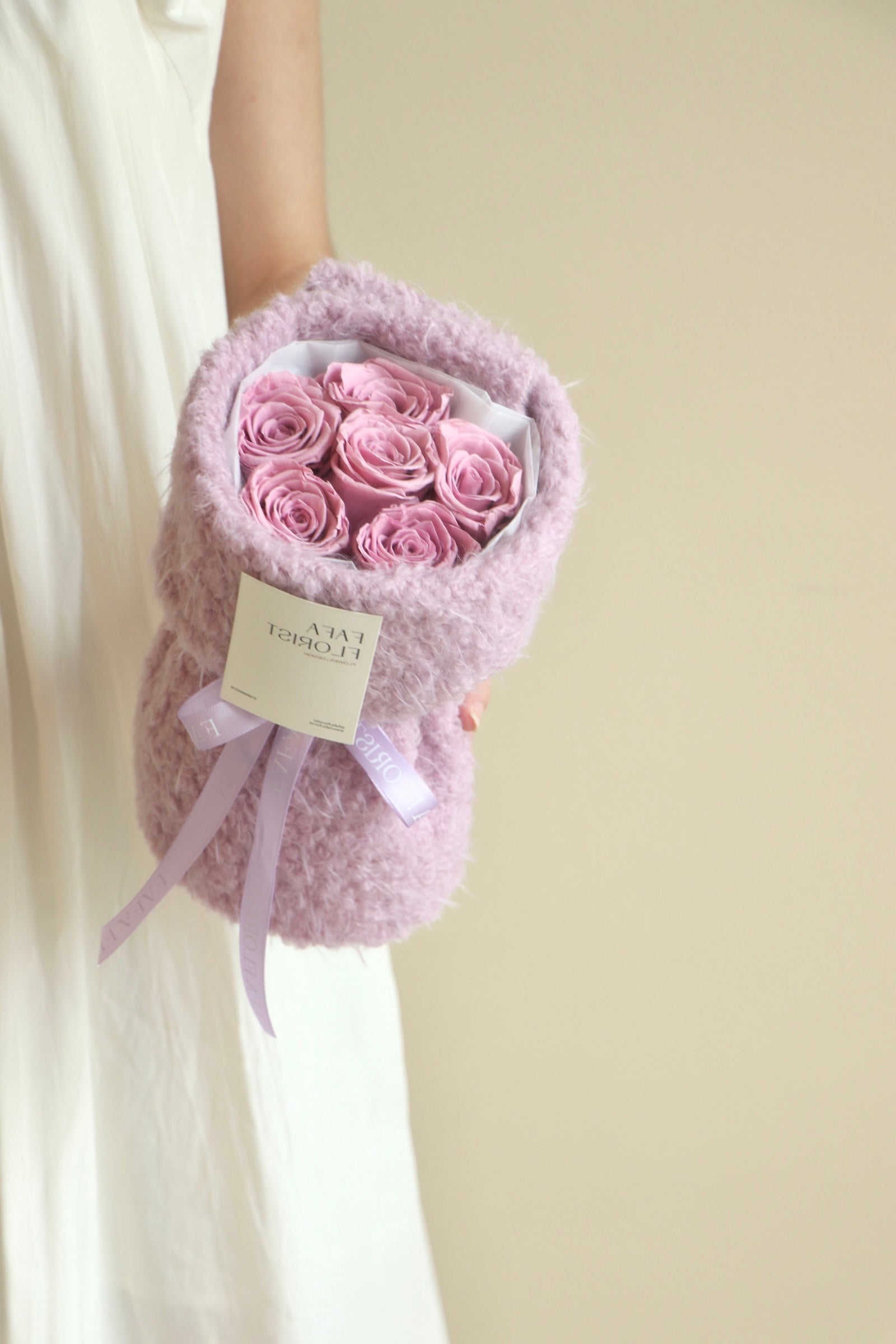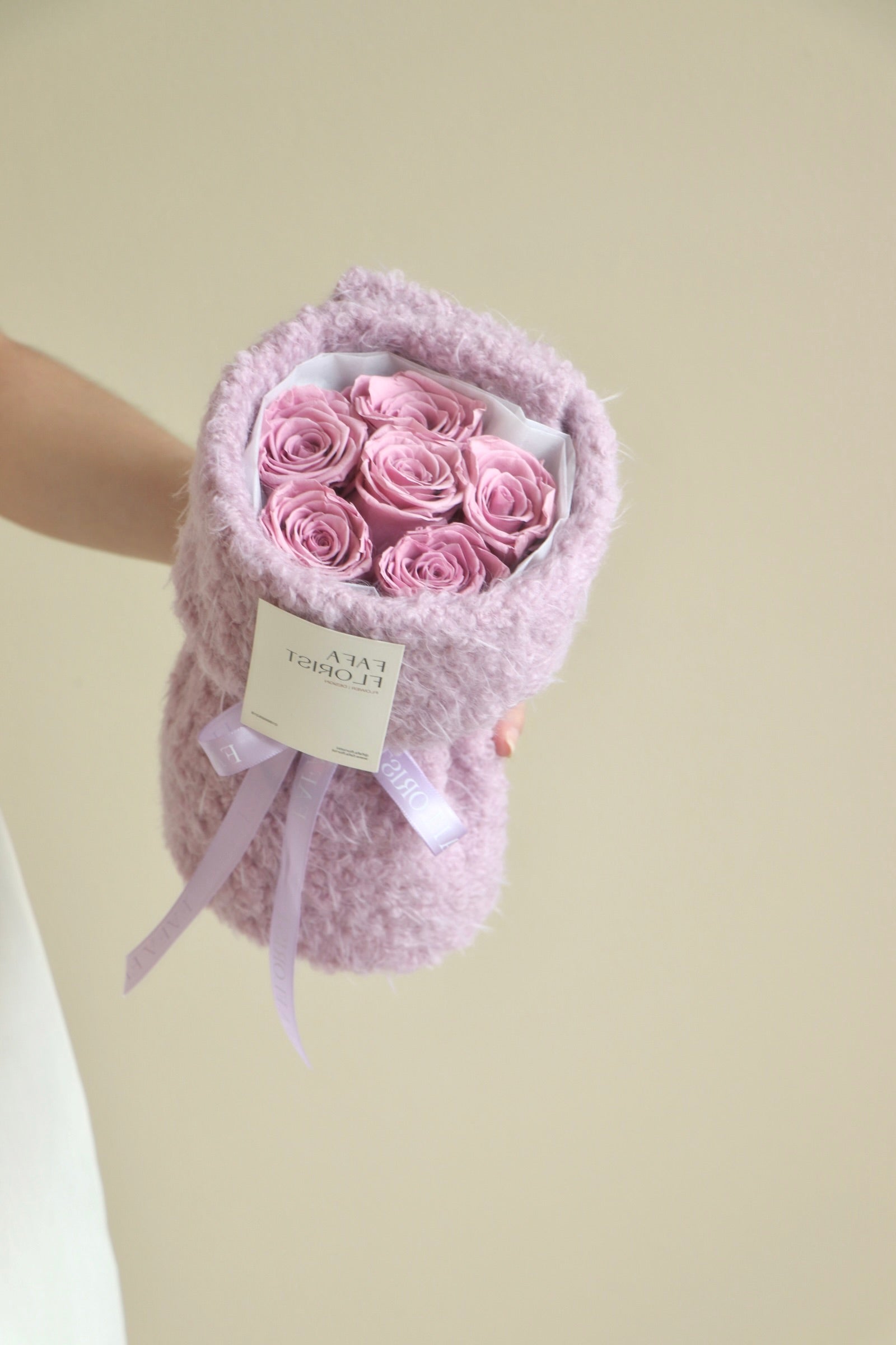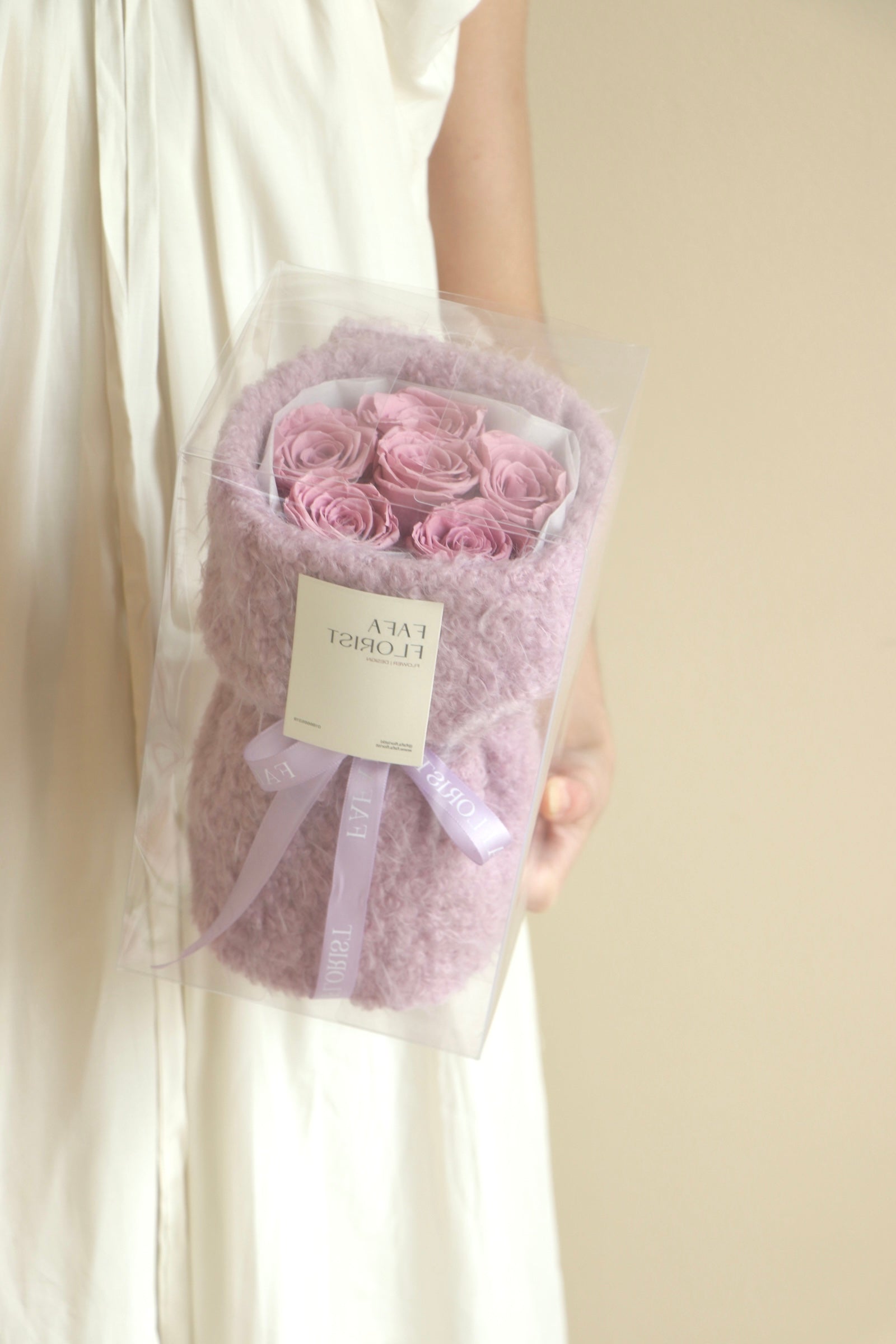 Preserved Rose 6 stalk with fluffy fabric wrapping