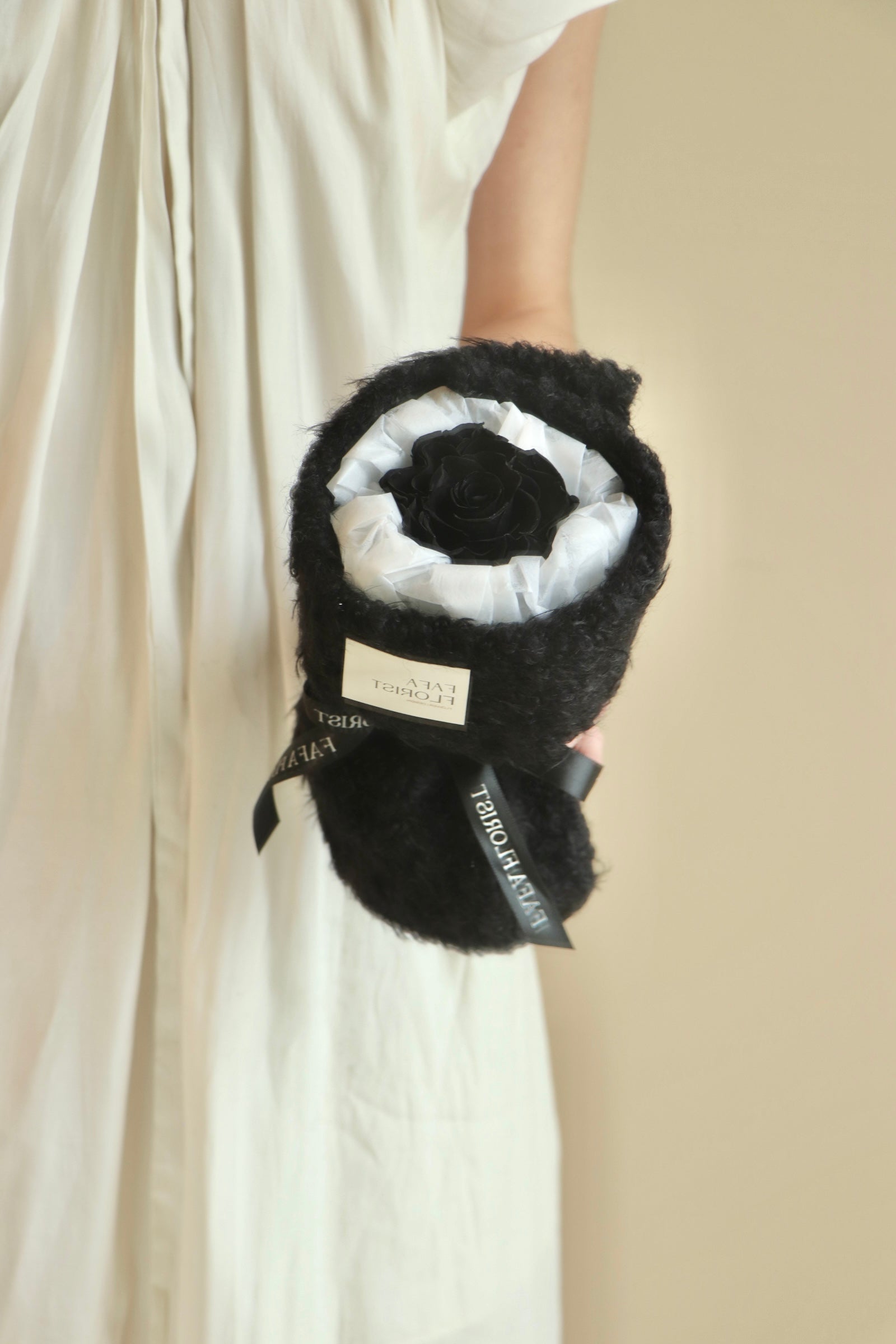 Preserved Rose 1 stalk with fluffy fabric wrapping
