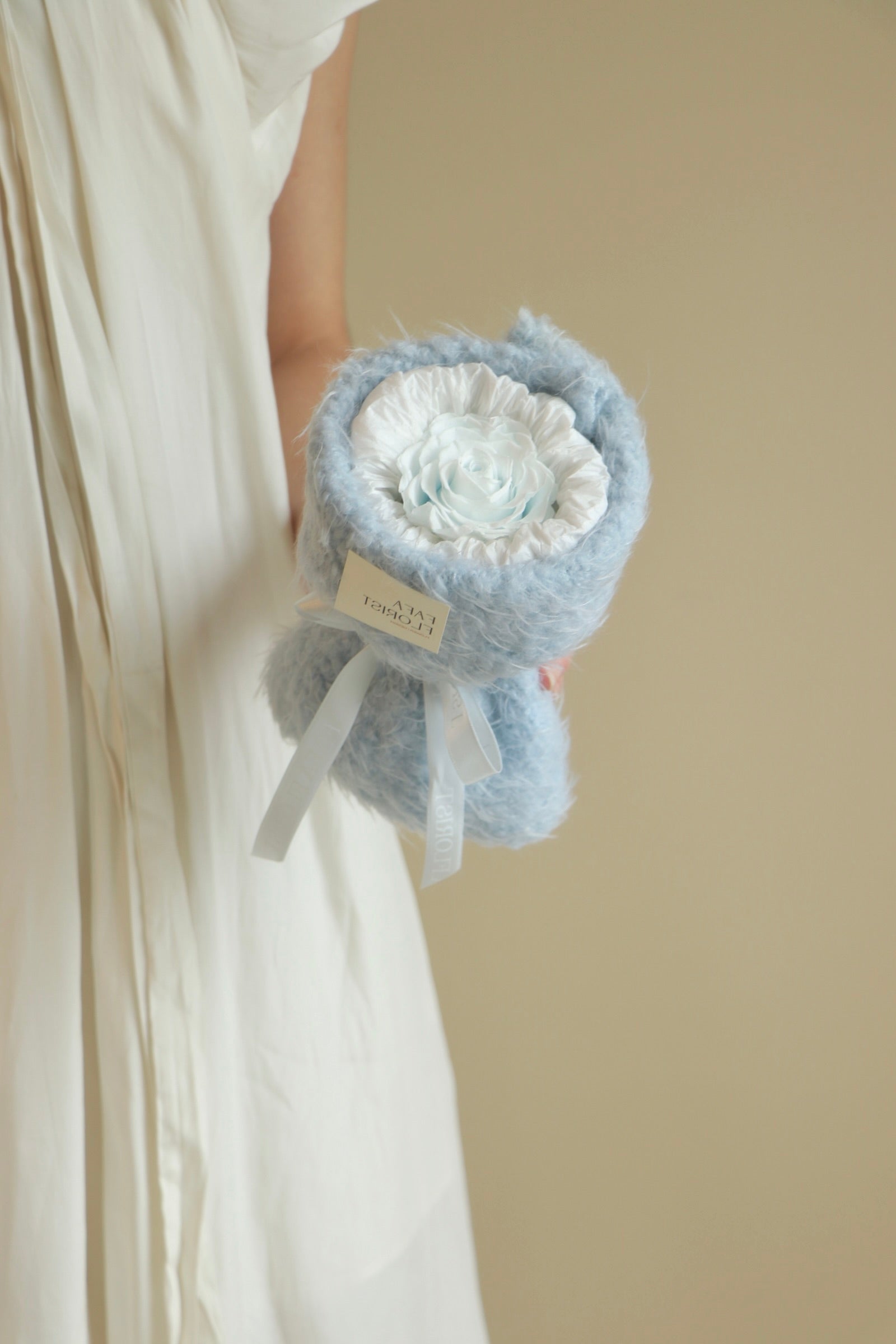 Preserved Rose 1 stalk with fluffy fabric wrapping