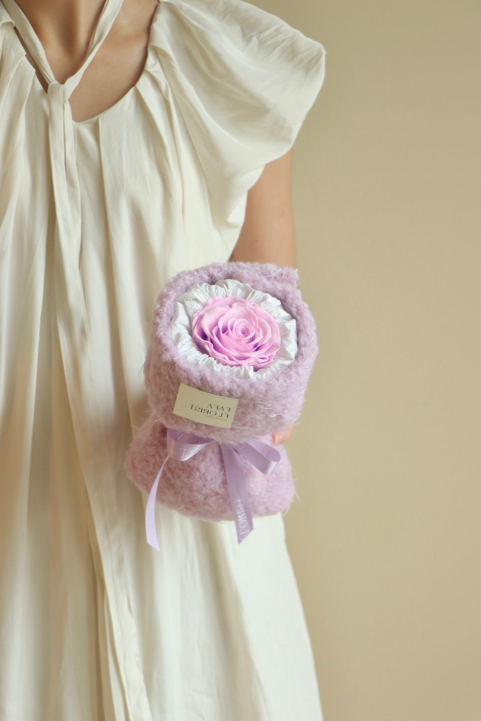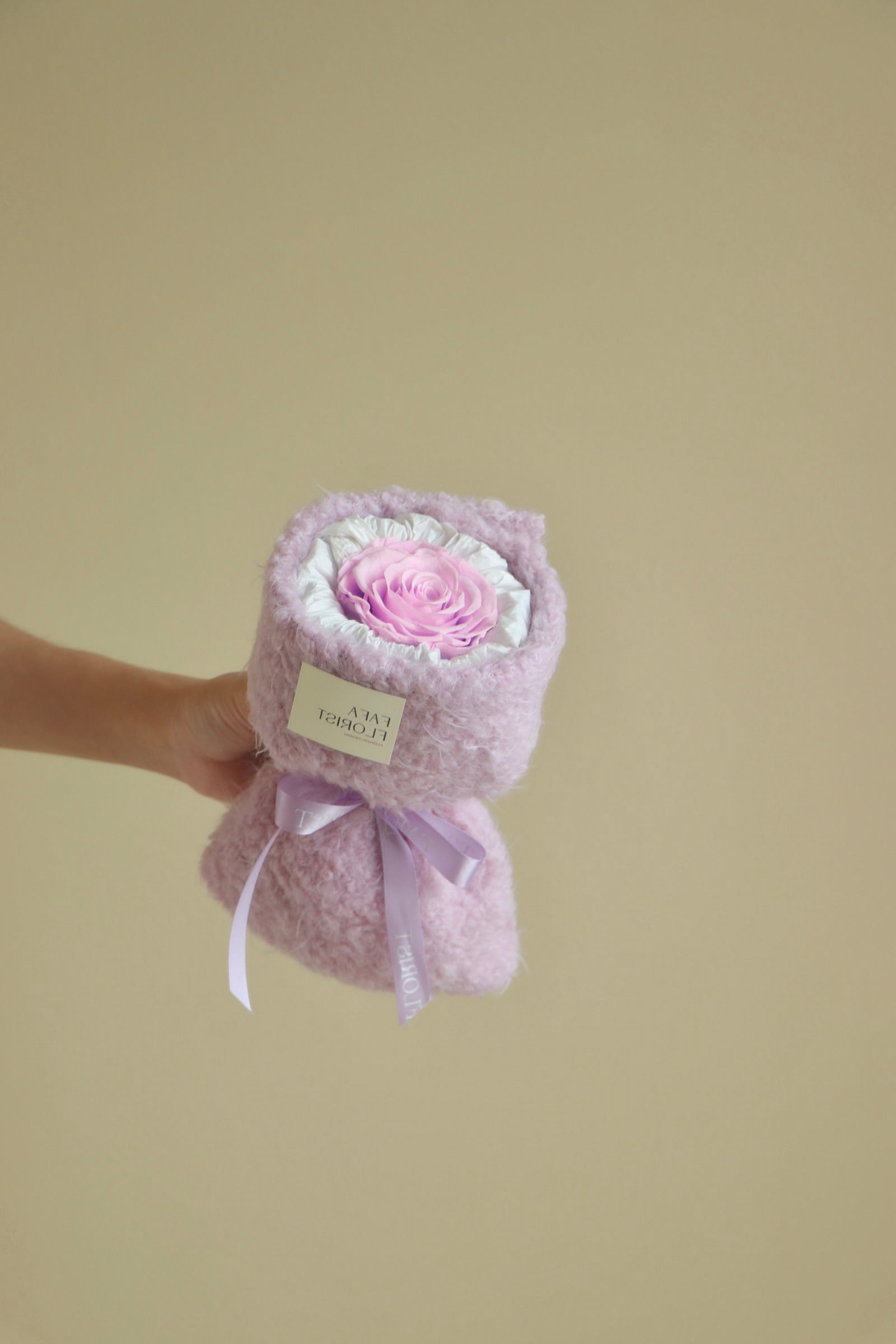 Preserved Rose 1 stalk with fluffy fabric wrapping