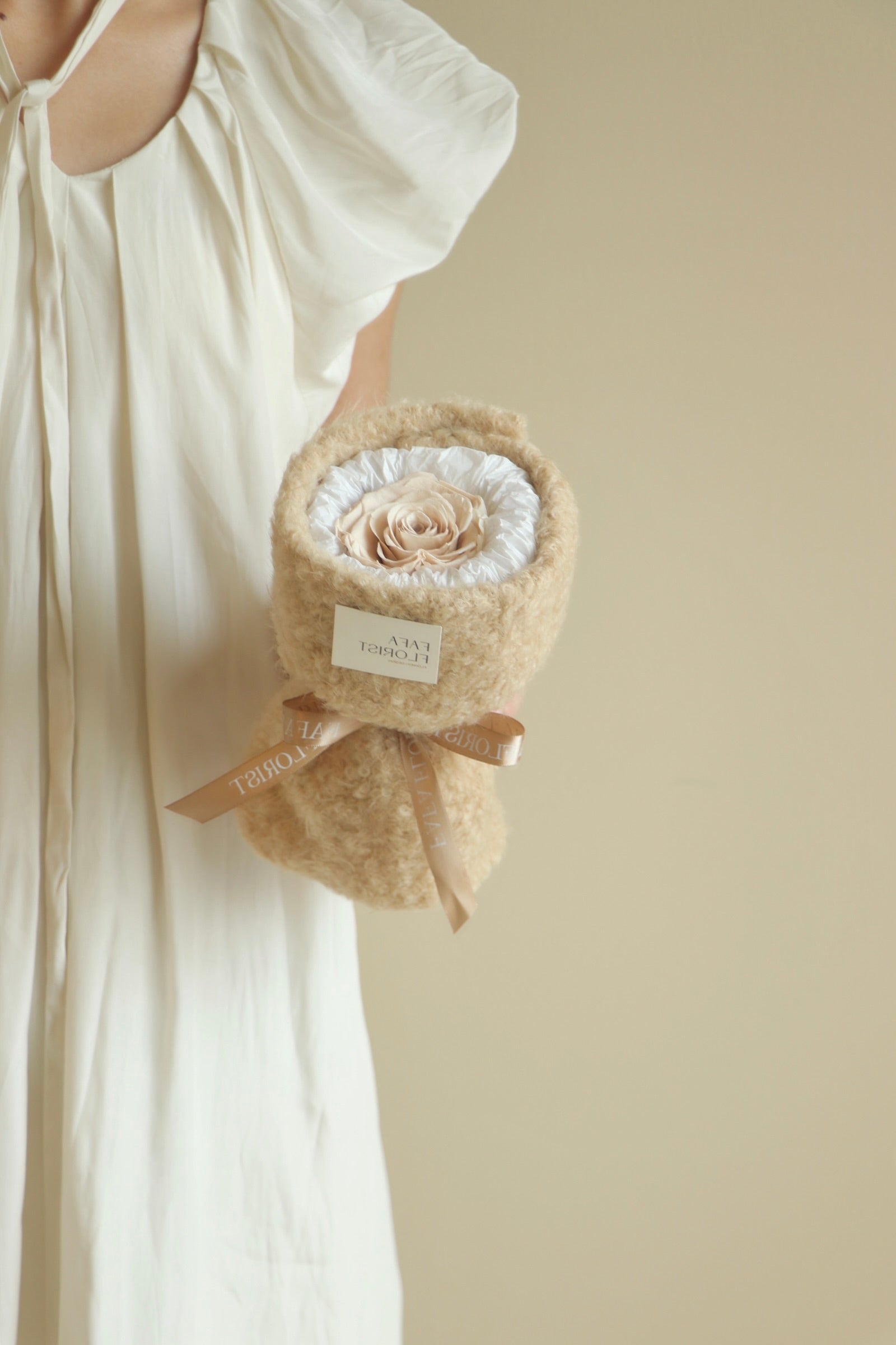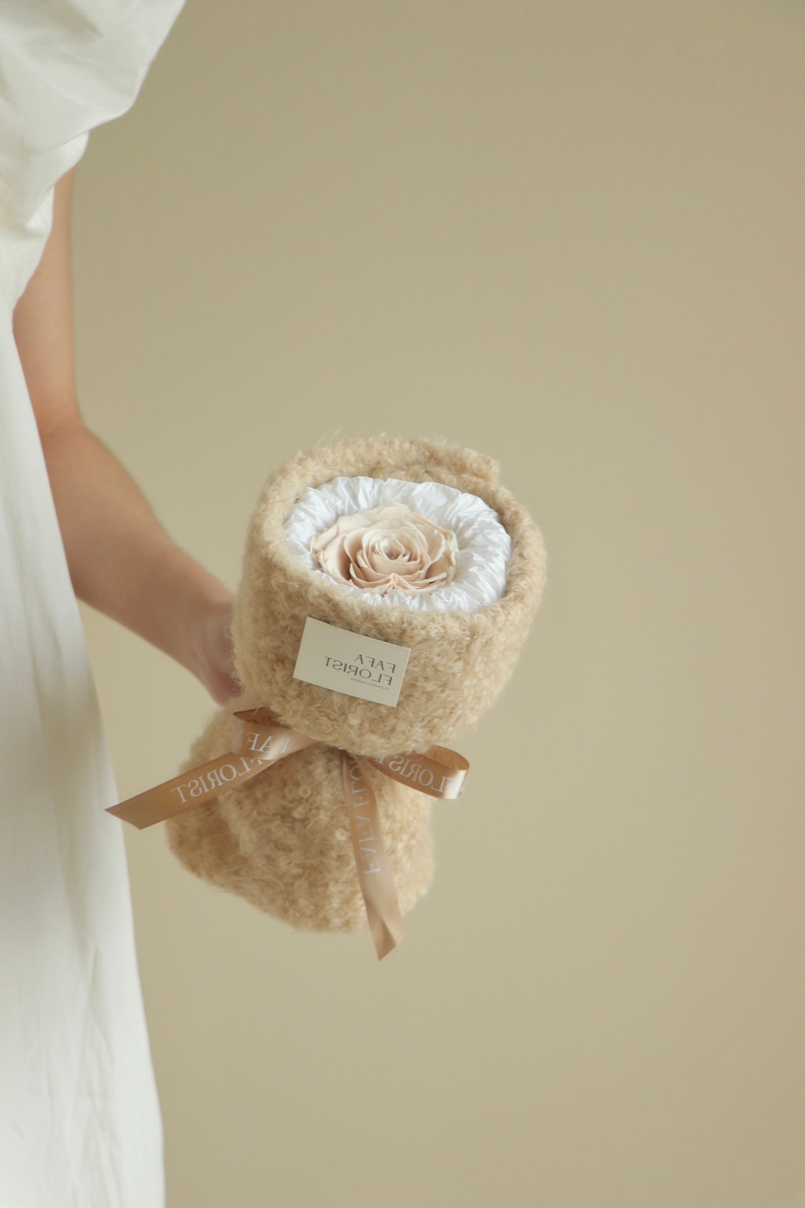 Preserved Rose 1 stalk with fluffy fabric wrapping