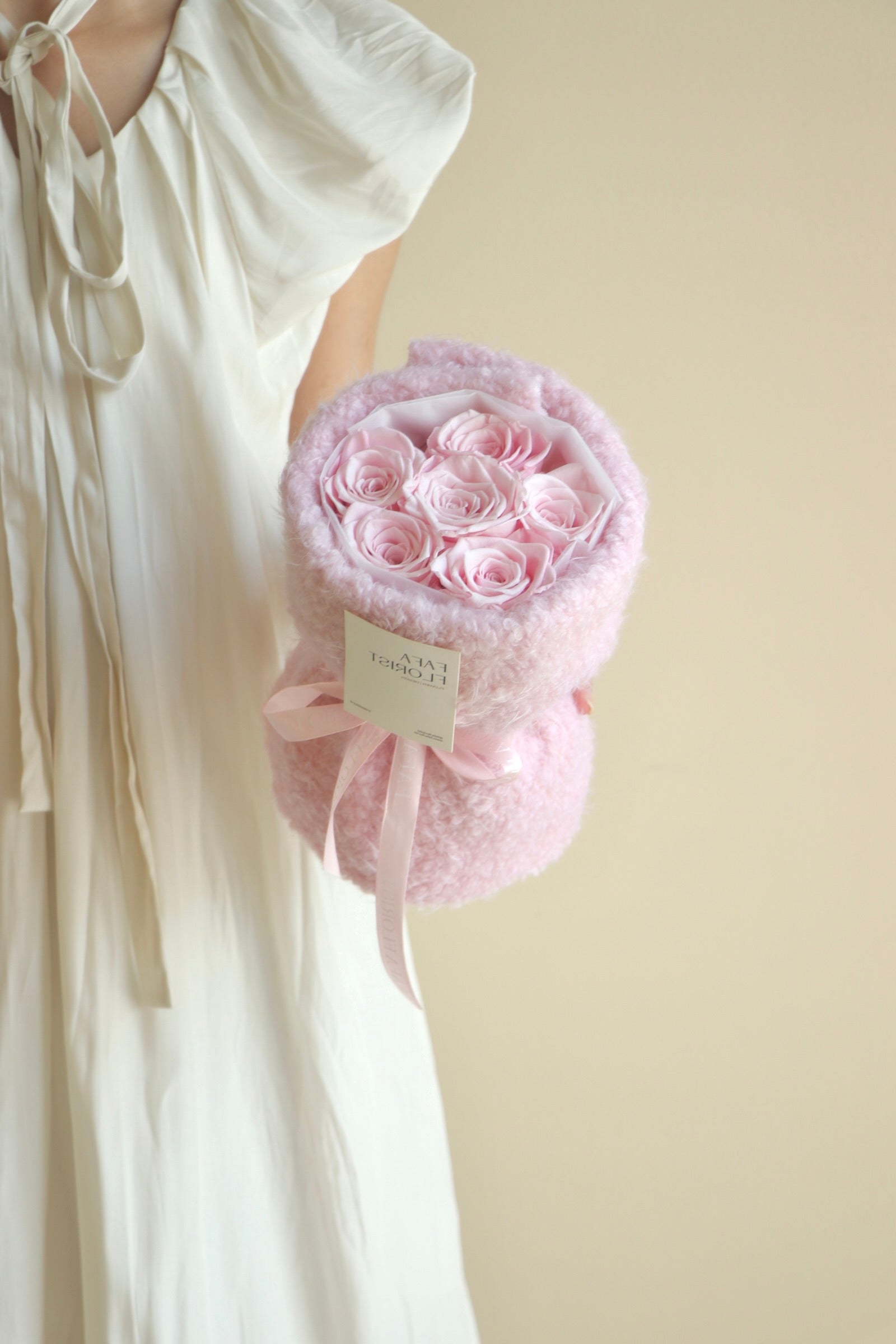 Preserved Rose 6 stalk with fluffy fabric wrapping